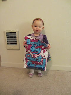 In honor of her birthday, we put Anistynn in the adorable dress and headband that Bonnie sent her for her 1st birthday and had her hold a sign that Tony drew while we did a mini photo session with her.